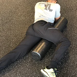 A great way to target the adductors (groin) is to place the roller under one hip while in a prone position.